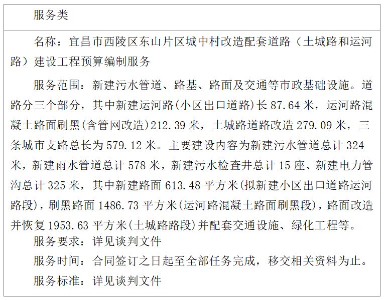 | 宜昌市西陵区东山片区城中村改造配套道路(土城路和运河路)建设工程预算编制服务项目成交公告 |
